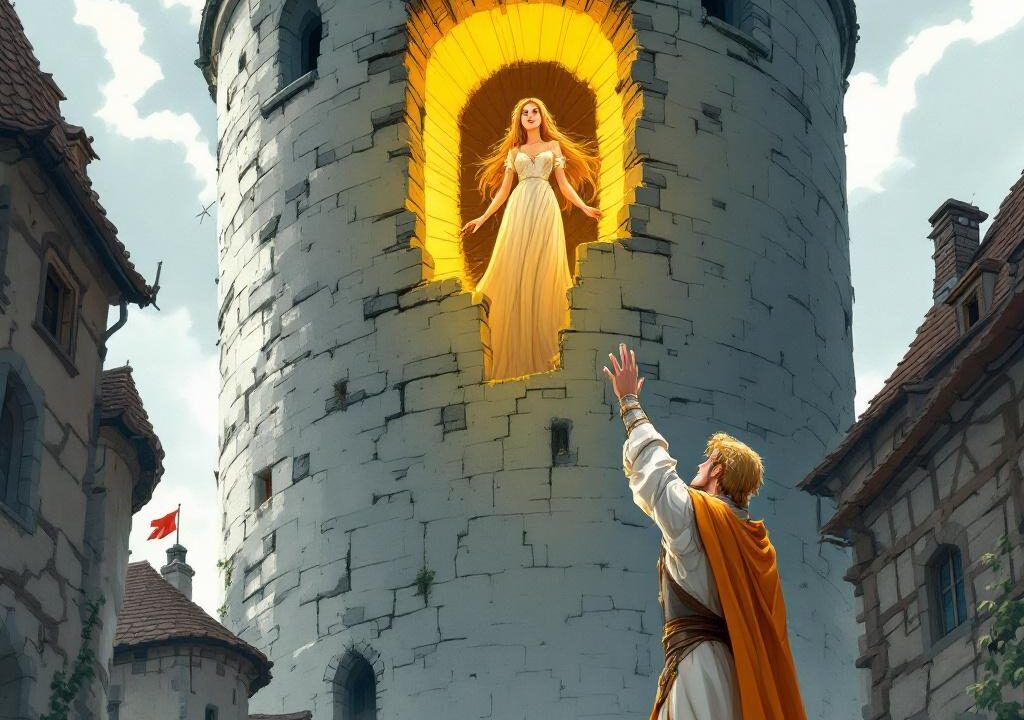 グリム童話『ラプンツェル』では、塔に閉じ込められていた少女が、